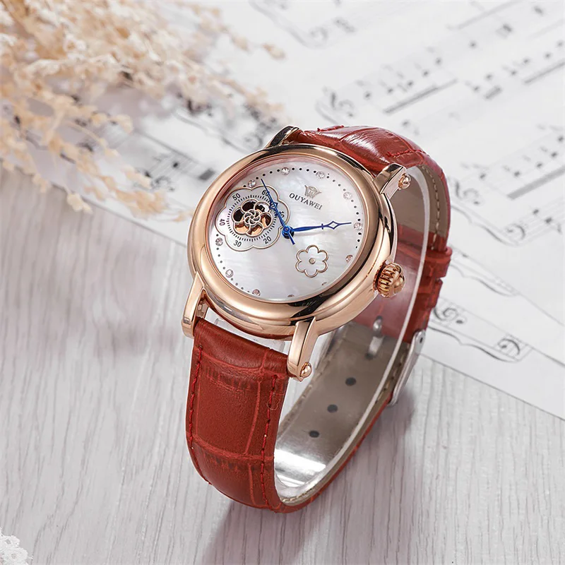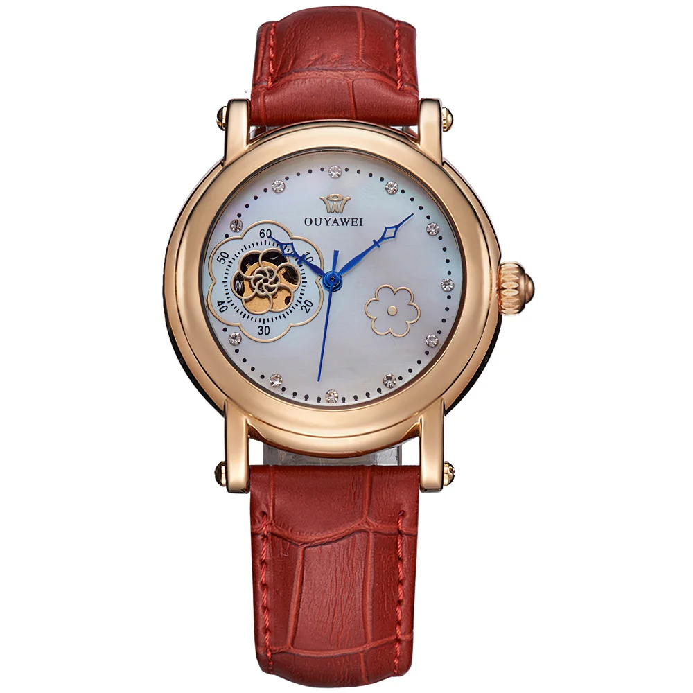 OUYAWEI Classic Women's Rose Mechanical Watches Ladies Luxury Brand Watch Automatic Watch Women Lei