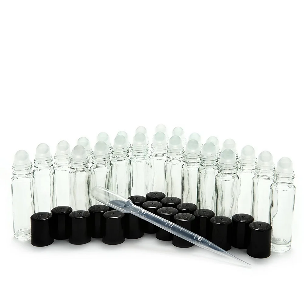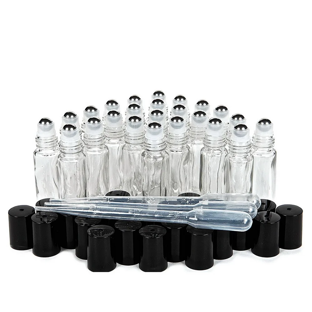 TOP 24pcs 10ml Plain Clear Glass Roll on Bottles Empty Stainless Steel Roller Ball Bottle for Essential