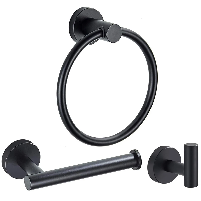 Bathroom Hardware Accessories Set Matte Black 3-Piece Set Includes Hand Towel Ring Robe Hook Toilet
